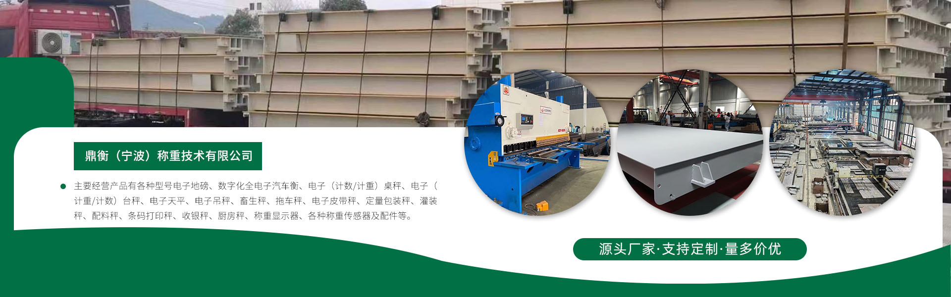 鼎衡(寧波)稱重技術有限公司位于美麗的港口城市寧波是一家專業從事各類電子衡器及自動化計量控制系統的公司,主要經營產品有各種型號電子地磅、數字化全電子汽車衡、電子(計數/計重)桌秤、電子(計重/計數)臺秤、電子天平、電子吊秤、畜生秤、拖車秤、電子皮帶秤、定量包裝秤、灌裝秤、配料秤、條碼打印秤、收銀秤、廚房秤、稱重顯示器、各種稱重傳感器及配件等。 經過多年的不斷創新,本公司無論產品品質,技術水平及售后服務均受廣大用戶信賴,贏得了良好的口碑。公司擁有一支專業銷售,售后服務隊伍。從產品的銷售到售后服務...